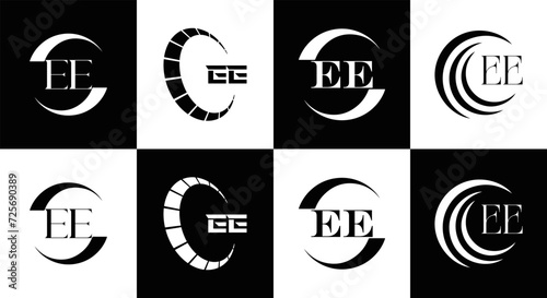 EE logo. E E design. WhitE EE letter. EE, E E letter logo SET design. Initial letter EE linked circle uppercase monogram logo. E E letter logo SET vector design. EE letter logo design