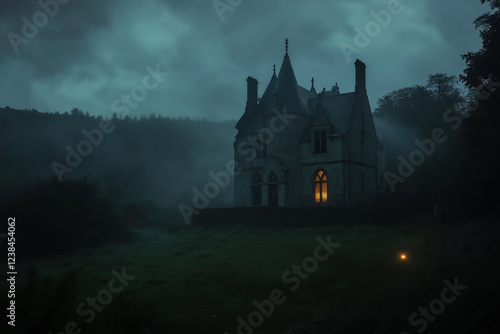Eerie Abandoned Victorian Mansion Draped in Ivy Under Misty Skies
