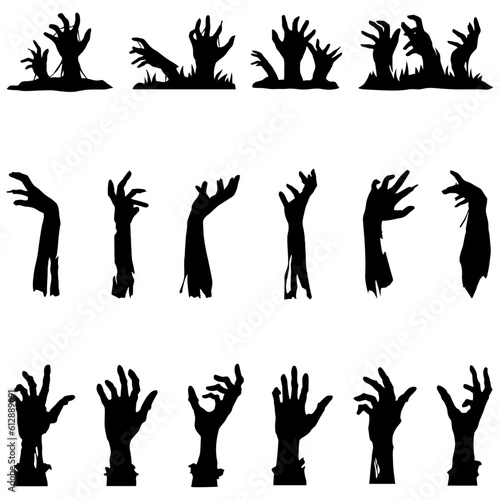 Eerie Encounters - Set of 16 Zombie Arm Black Vector Silhouettes for Halloween Design