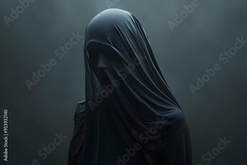 figure, fabric, mystery, intrigue, atmosphere, shadow, hood, art, portrait, drama, stillness, chill, phantom, invoking, cryptic, tension, conceal, person, ghost, mist, horror, mystique, fear, absence, watcher, darkness, silent, silhouette, concept, hazy, suspense, hide, texture, specter, lurk, vague, fright, unknown