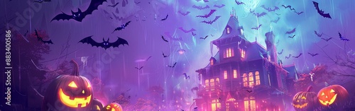 celebration, party, illustration, dark, night, holiday, creepy, cartoon, scarey, castle, skittish, silhouette, halloween, haunted, october, bat, pumpkin, evil, symbol, graphic, fear, horror, treat, greeting, house, lantern, ghost, tree, design, autumn, poster, background, art, banner, moon, orange, card, black, darkness, mystery, trick, character, festive, concept, element, template, decoration, invitation