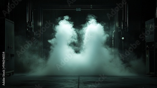 smoke, industrial, dark, factory, pipe, steel, metal, light, glow, green, teal, mysterious, fog, vapour, steam, shadowy, grunge, textured, background, scene, environment, setting, abstract, design, texture, image, photo, visual, graphic, illustration, art, concept, mood, atmosphere, eerie, skittish, ominous, science, technology, machinery, equipment, power, energy, futuristic, vintage, old, retro