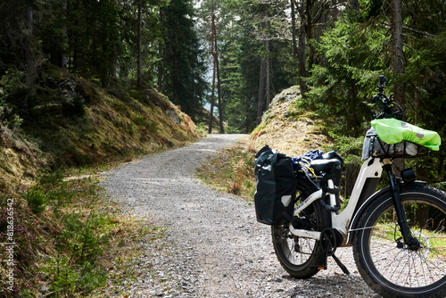 E-Fatbike on a Gravel Forest Path in the Austrian Alps