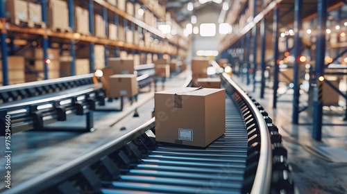 Efficient Conveyor Belt System in a Distribution Warehouse – Perfect for Logistics, Industrial Operations, and Supply Chain Management Illustrations Showcasing Streamlined Workflow