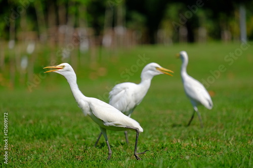 bird, egret, white, green, grass