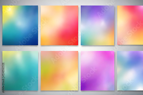 Eight vibrant pastel color gradient squares arranged on a gray background
