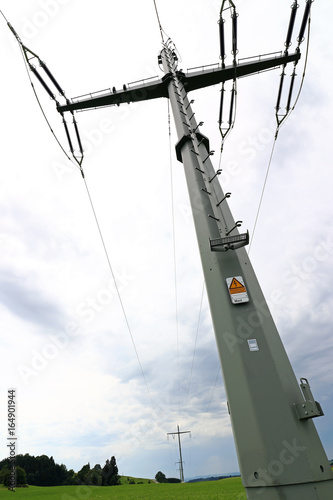 pylon, transmission tower, pylon, cable, stream, electric cable, technology, line, duct, stress, metallic, high, height, heaven, german, electric power, energy, electricity, construction, build, dangerous