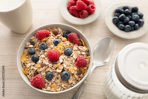 cereal, breakfast, oatmeal, huckleberry, raspberry, nut, fruit, healthy, health, fruit, grain, shell, plate, food, meal, aliment, organic, energy, dry, epicure, honey, berry, blueberry, wrought, nobody, red, blue, milk, vegetarian, dish, bilberry, raspberry, oatmeal