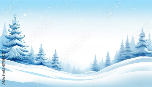 Eine weite, ruhige Winterlandschaft mit schneebedeckten Hügeln und Tannenbäumen, perfekt als Hintergrund mit großzügigem Platz für Text. Generative KI.