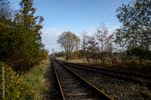 iron, railway, track, gravel, soften, heaven, cloud, tree, distant