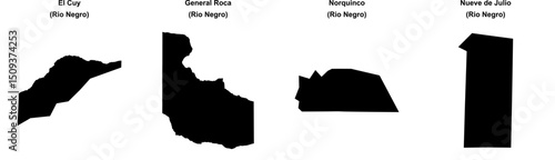 El Cuy, General Roca, Norquinco, Nueve de Julio outline maps
