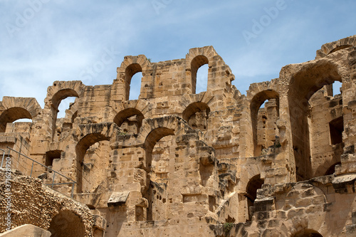 El Djem Tunisia, arches in the ruins of a roman amphitheater