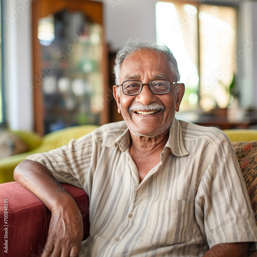 elderly indian man sitting on the sofa