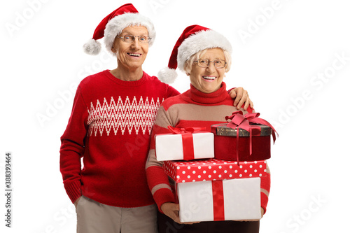 elderly, christmas, age, background, carefree, caucasian, celebrate, celebration, claus, couple, december, event, female, fun, gift, grandparent, happiness, happy, hat, holding, holiday, isolated, joy, joyful, lifestyle, male, man, merry, new, old, older, people, person, pile, portrait, present, red, santa, season, seasonal, senior, smile, smiling, tradition, traditional, white, winter, woman, christmas, year