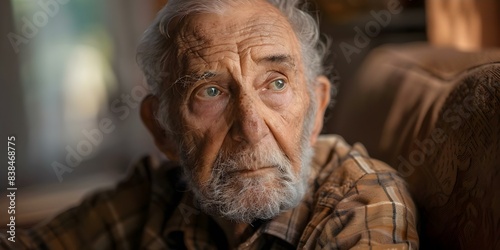 Elderly man with Alzheimers sitting alone at home feeling lost and sad. Concept Loneliness, Elderly Care, Mental Health, Alzheimer's Awareness, Emotional Support
