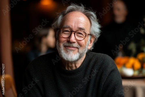 elderly, man, goggles, beard, smile, gathering, cosy, interior, evening, joy, warm, friends, flower, venue, atmosphere, portrait, happiness, camaraderie, social, lighting, expression, age, character, family, celebration, friendship, warmth, enjoyment, casual attire, togetherness, laughter, people, event, comfort, dinner, conversation, happy, connection, setting, intimacy, company, detail, life, dining, relaxation, moment, smile, gathering, culture