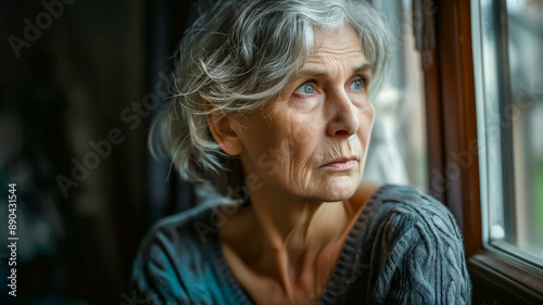 grey hair, window, thoughtful, senior, portrait, indoor, pensive, serene, elderly, beauty, ageing, wisdom, female, peaceful, reflective, wrinkle, mature, woman, closeup, expression, contemplation, natural light, face, introspective, deep thought, sweater