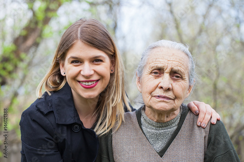 adult, affectionate, aged, beautiful, caucasian, daughter, elderly, spring, family, female, generation, grey hair, grandmother, grandmother, arthritis, disease, happy, help, walking, care, love, mature, problem, old, people, high-blood-pressure, human relationships, retired, retirement, senior, lonely, allergy, together, garden, woman, blossom, osteoporosis, alzheimer, dementia, disorder, caretaker, smiling, support, disability, caregiver, health care, carer, joyful, expressive