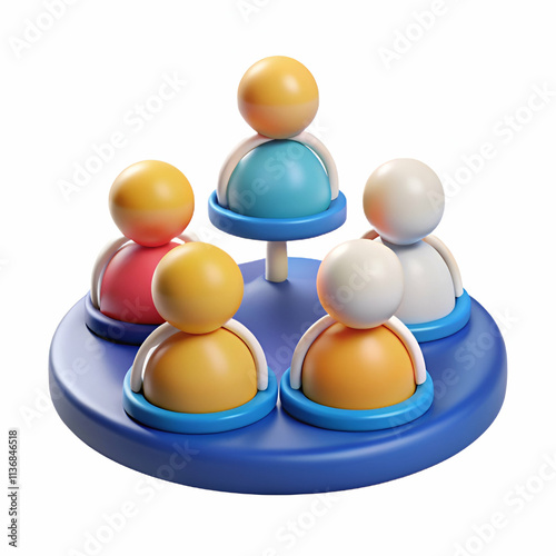 E-learning Colorful toy figures arranged on a circular base, designed for playful interaction and learning.