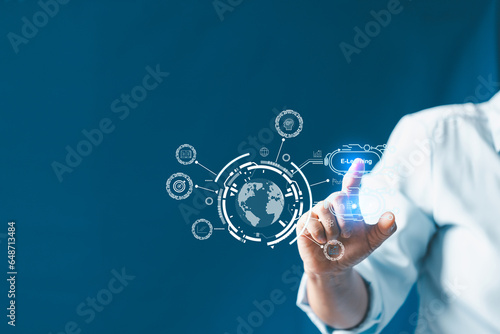 E-learning education internet technology webinar online courses concept. Online education training and e-learning webinar on internet for personal development and professional qualifications.