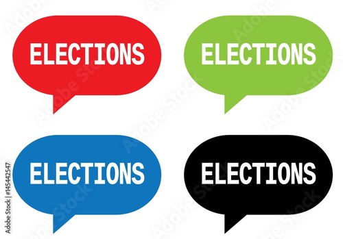 ELECTIONS text, on rectangle speech bubble sign.