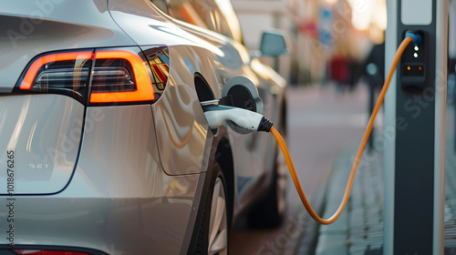 Electric Car Charging Station in Use | Sustainable Transportation and Clean Energy Solutions for Eco-Friendly Commuting