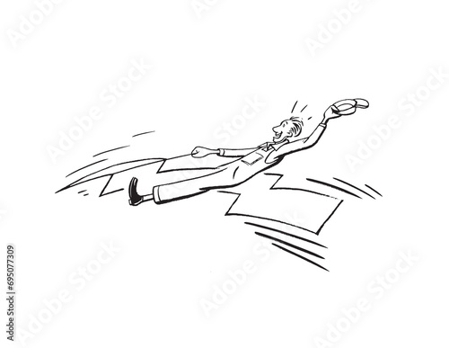 thunderbolt, pen and ink, electrician, power, trade, contractor, cartoon, illustration, flying, drawing, art, vintage
