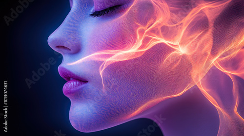 electric, serene, face, energy, powerful, digital, current, calmness, art, light, balance, harmony, flow, abstract, aethereal, gentle, fluidity, contemporary, peaceful, elegant, spirit, beauty, wireframe, glow, neon, electricity, serenity, peace, motion