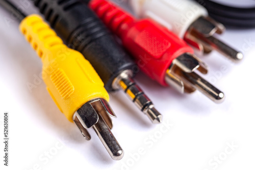 background, cable, close, colours, computer, concept, connect, cut, cut-out, electric, energy, hardware, image, information, isolated, line, micro, object, office, plug, power, red, single, supply, television, up, video, volt, white, wired, yellow