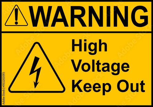 Electric shock sign. High voltage cable warning sign. High voltage equipment. Caution, do not touch the cable. Warning electrical hazard. Do not open electrical panel.
