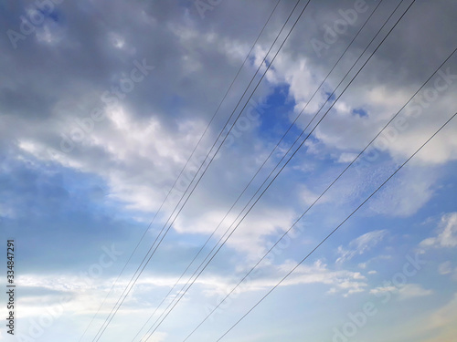 background, cloud, metal, blue skies, infrastructure, support, watt, outdoors, diagonal, cloudscape, transformer, deliver, cloud, danger, network, sky, blue, electricity, power, high, technology, electric, cable, energy, wire, line, electrical, voltage, supply, transmission, industry, industrial, pole, steel, tower, distribution, pylon, structure, engineering