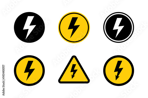 electrical, hazard, warning, signs, lightning, bolt, icon, danger, voltage, high, electricity, symbol, caution, safety, power, risk, energy, alert, black, yellow, triangle, oval, graphic, illustration, vector, shape, design, isolated, white, clip art