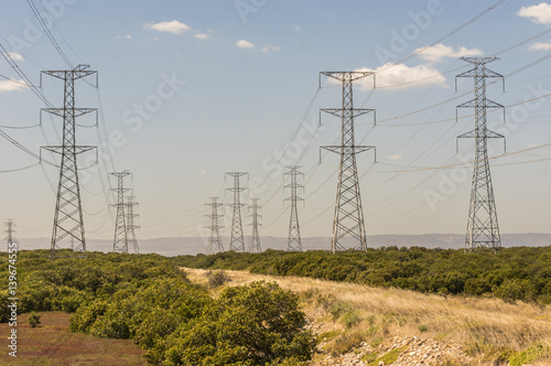 Electricity supply towers and structures transmit power along high voltage wires and cables