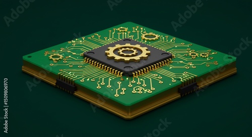 chips, circuit, board, gear, isometric, electronic, technology, device, component, system, computing, engineering, artificial, intelligence, machine, learning, automation, innovation, design, render, closeup, detail, gold, green, hardware, datum, digital, connection, network, processing, microchip, central processing unit, illustration, computer, part, mechanism, background, modern, concept, solution, macro, artificial intelligence, connectivity