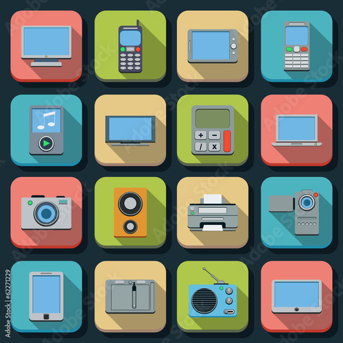 radio, laptop, photo, electric, display, music, vector, tablet, signs, television, phone, symbol, multimedia, lense, video, shadow, miniature, graphic, loudspeaker, digital, technology, computer, equipment, modern, flat, receiver, icon, printer, monitor, collection, design, touch screen, television, long, electronic, set, smartphone, style, player, pictogram, phone, device, camera, screen, buttons