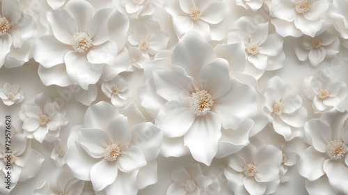 Elegant 3D background with luxurious white flowers against a silk backdrop, ideal for printing on walls and ceilings.