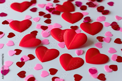 Elegant 3D Heart Confetti Overlay Ideal for Celebrations and Romantic Occasions