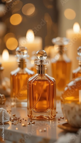 perfume, bottle, amber, luxury, fragrance, elegant, glasses, candle, decor, glowing, festive, warm, marble, reflections, celebration, gold, beauty, aroma, style, sophisticated, chic, classic, glamour, ambience, artistic, evening, romantic, table, ambience, premium, design, smooth, fashion, essence, exquisite, mood