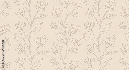 Elegant and delicate floral outline seamless pattern creating a serene and sophisticated background for various design applications, evoking a timeless natural aesthetic.