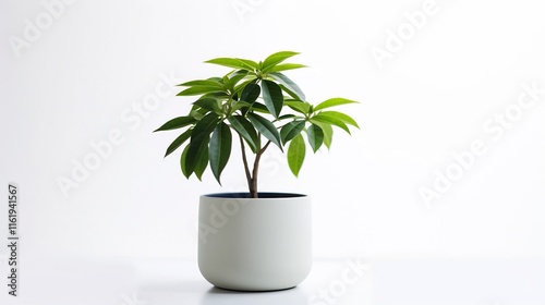 Elegant and Minimalist Dwarf Schefflera Plant in a Simple Pot Placed on a Clean White Background