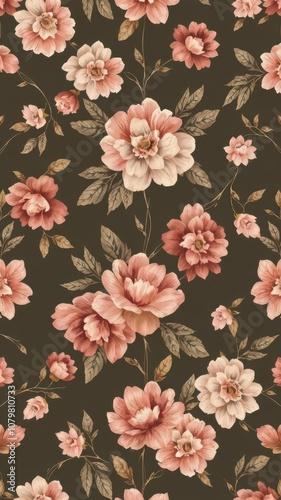 Elegant and timeless floral pattern design suitable for wallpaper, fabrics, and digital backgrounds, digital, fabric
