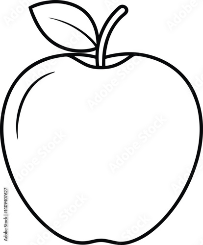 Elegant Apple Line Art Vector – Simple Black Fruit Outline with Leaf