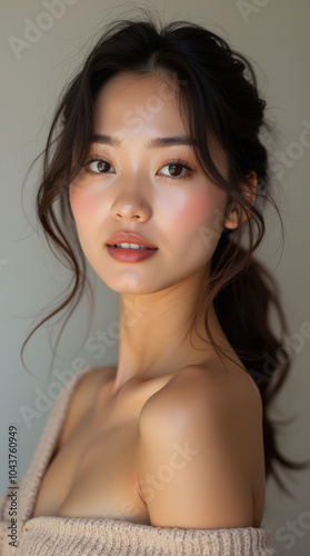 Elegant Asian Beauty Model in Natural Pose for Photography | Glamorous Fashion, Skincare, and Lingerie Shoot