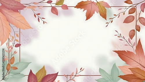 Elegant autumn border with muted pastel leaves and delicate vines forming a soft frame