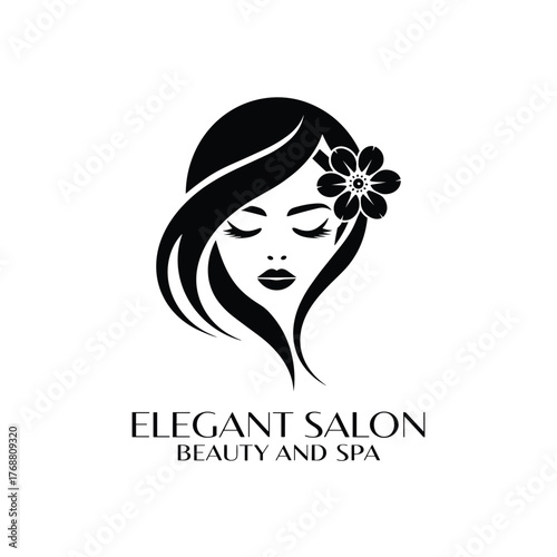 Elegant Beauty Salon Logo Design – Feminine Spa Icon with Flower, Modern Hair and Beauty Brand Template