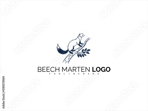 Elegant Beech Marten Logo with Minimal Detail and Bold Linework. Ideal for Sophisticated Branding in Wildlife Products, Outdoor Gear, and Sustainable Packaging.