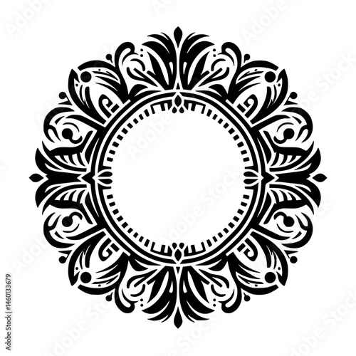 Elegant Black & White Floral Circular Frame Design