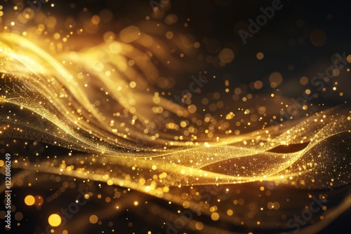 Elegant Black and Gold Abstract Fluid Waves with Shimmering Metallic Texture for Luxury, Modern Glamour, and High-End Design Backgrounds