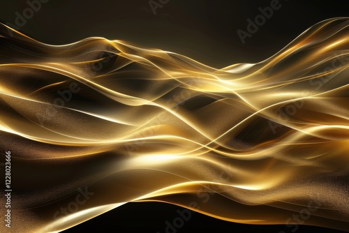 Elegant Black and Gold Abstract Fluid Waves with Shimmering Metallic Texture for Luxury, Modern Glamour, and High-End Design Backgrounds