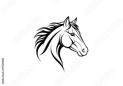 Elegant Black and White Horse Head Illustration in Artistic Style for Logo Design